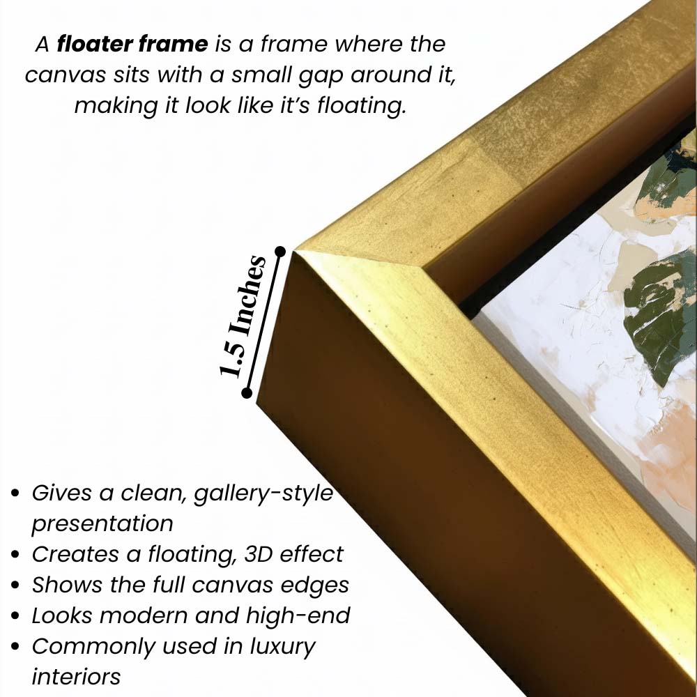 • Optional Floater Framing: Available with a premium floater frame option that creates a subtle gap between the canvas and the outer frame, enhancing depth and giving the artwork a refined, gallery-style floating effect that elevates its visual appeal.