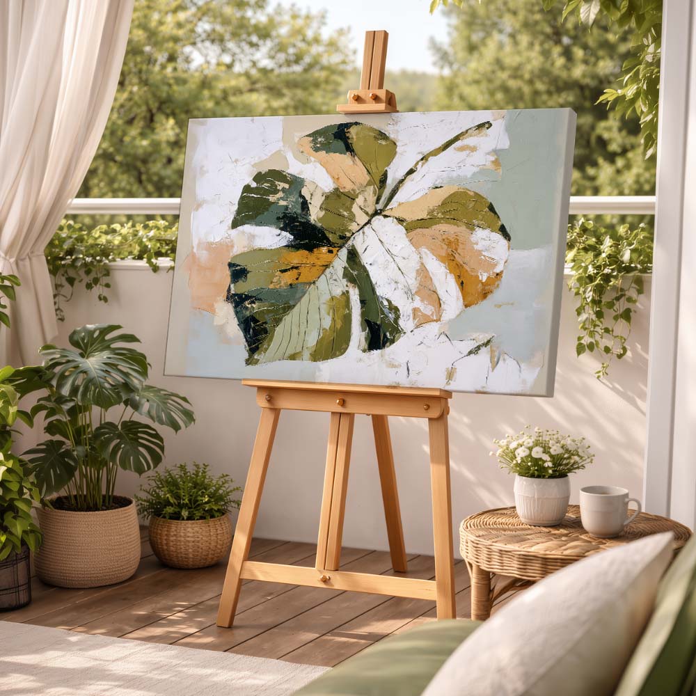Abstract Leaf is a modern exploration of organic beauty, where nature is reimagined through bold forms and expressive textures. The artwork presents a stylized leaf composition, blending earthy greens with soft neutrals to create a balanced and contemporary visual experience.