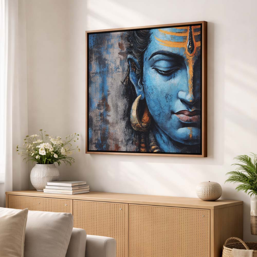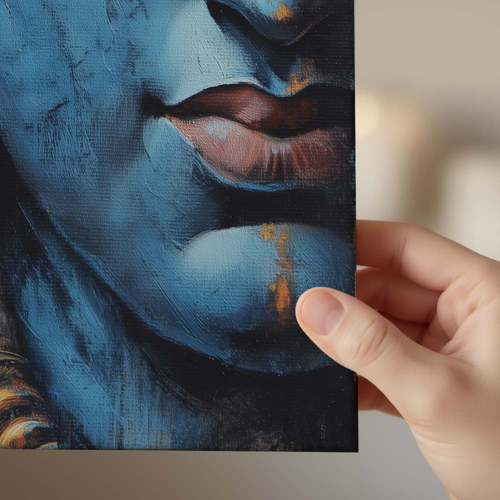 Blue Nirvana is a serene and introspective portrayal of spiritual calm, capturing a divine presence through soothing shades of blue and gentle abstraction. The artwork radiates peace and depth, with soft textures and flowing tones that evoke a meditative state of mind.