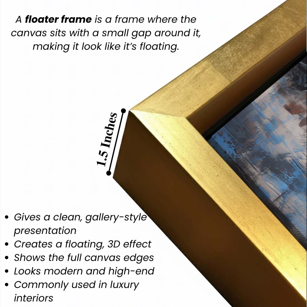 - Optional Floater Framing: Available with a premium floater frame option that creates a subtle gap between the canvas and the outer frame, enhancing depth and giving the artwork a refined, gallery-style floating effect that elevates its visual appeal.