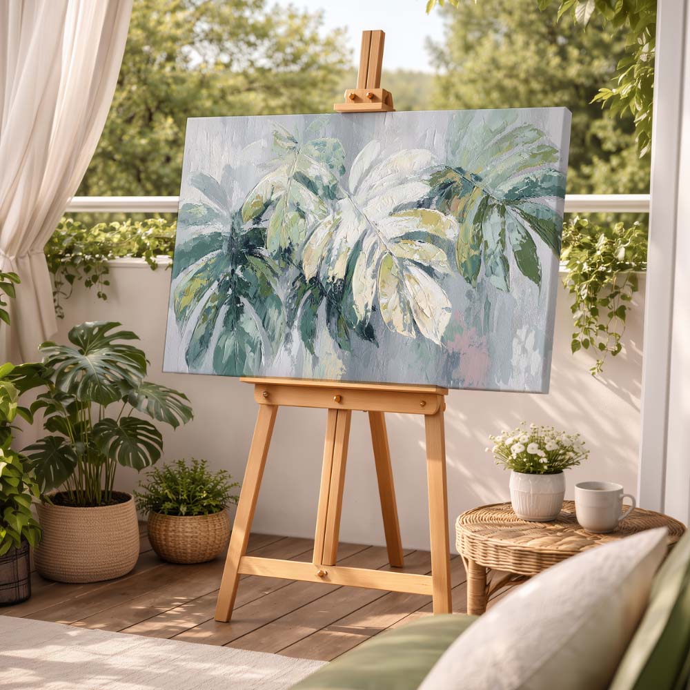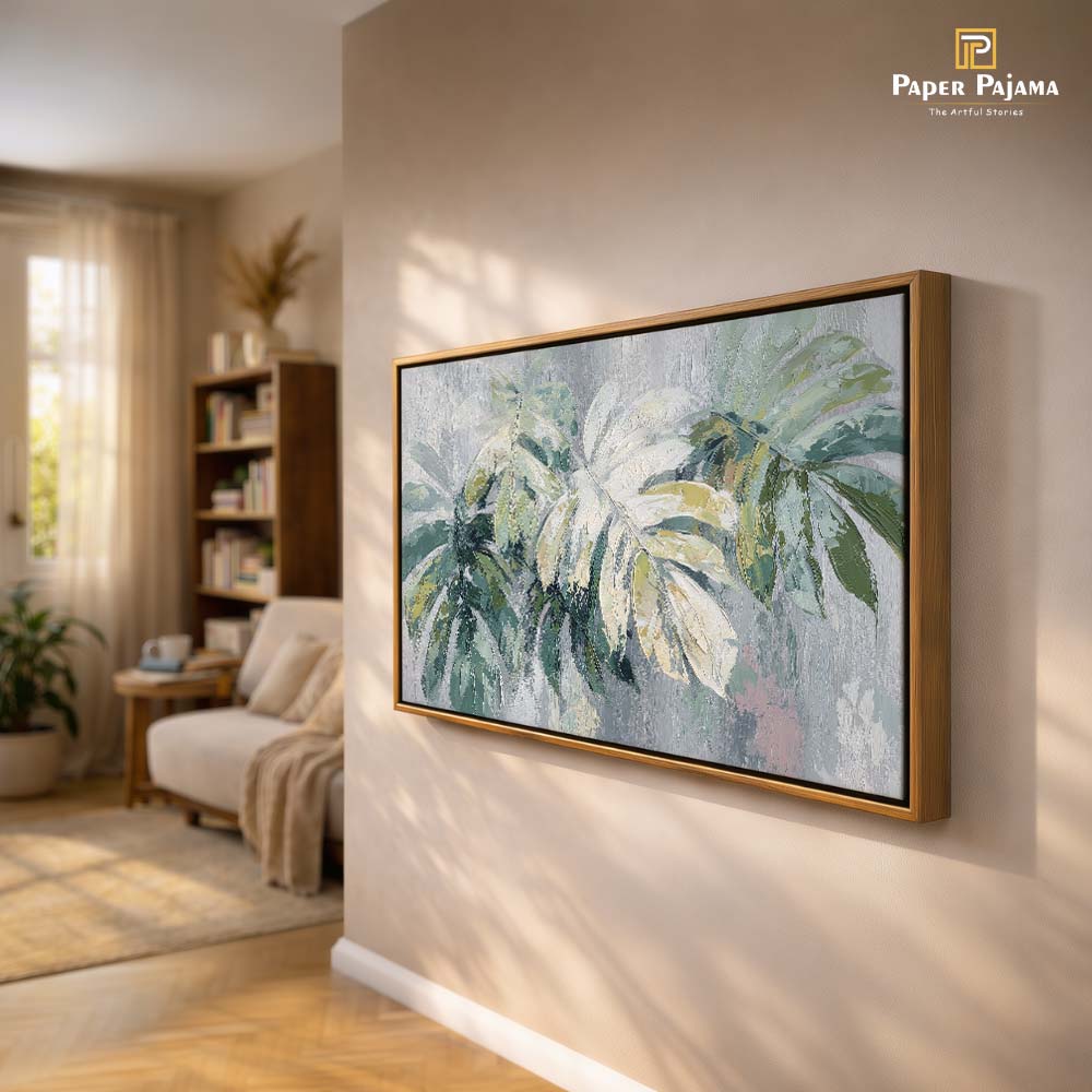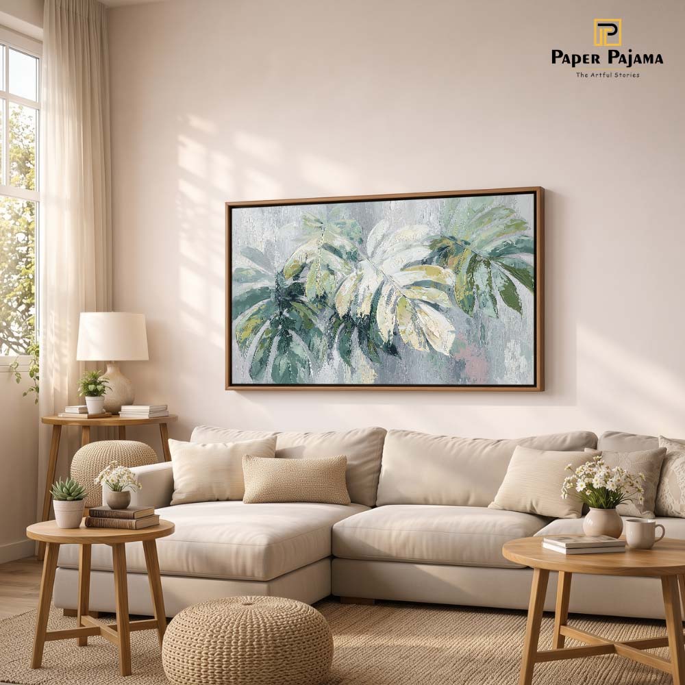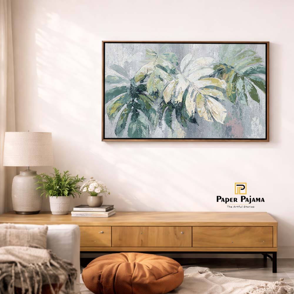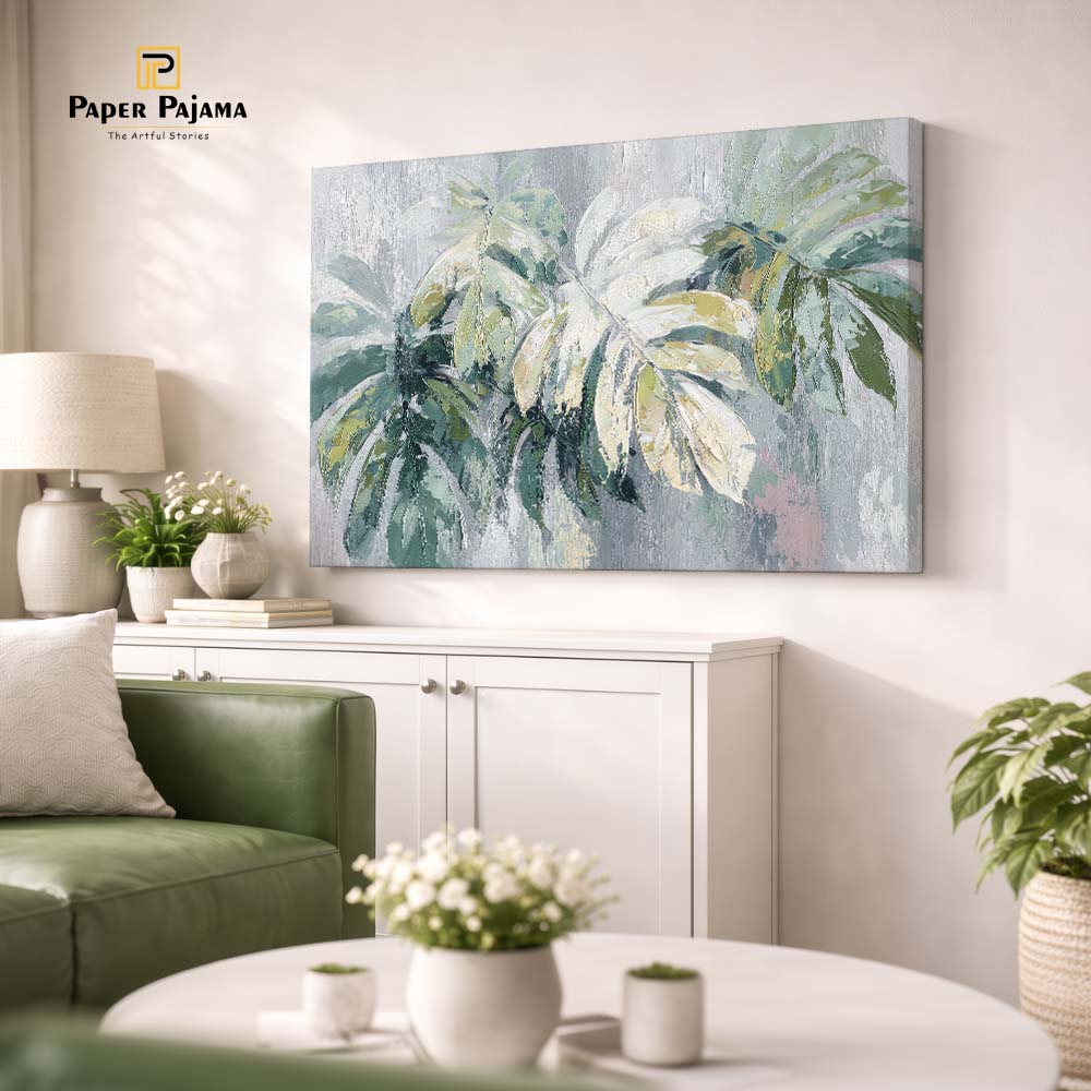 The smooth blending of colors and delicate detailing give the leaves a soft, natural flow, while the minimal composition keeps the overall look clean and modern. The piece feels calm yet uplifting, like a breath of fresh air.