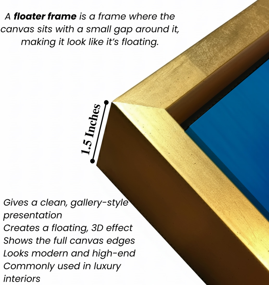 - Optional Floater Framing: Available with a premium floater frame option that creates a subtle gap between the canvas and the outer frame, enhancing depth and giving the artwork a refined, gallery-style floating effect that elevates its visual appeal.