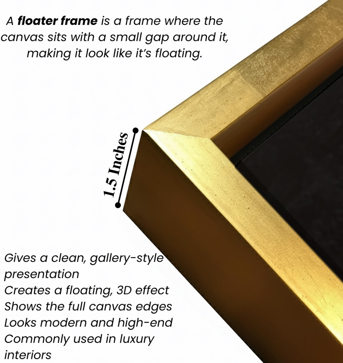- Optional Floater Framing: Available with a premium floater frame option that creates a subtle gap between the canvas and the outer frame, enhancing depth and giving the artwork a refined, gallery-style floating effect that elevates its visual appeal.