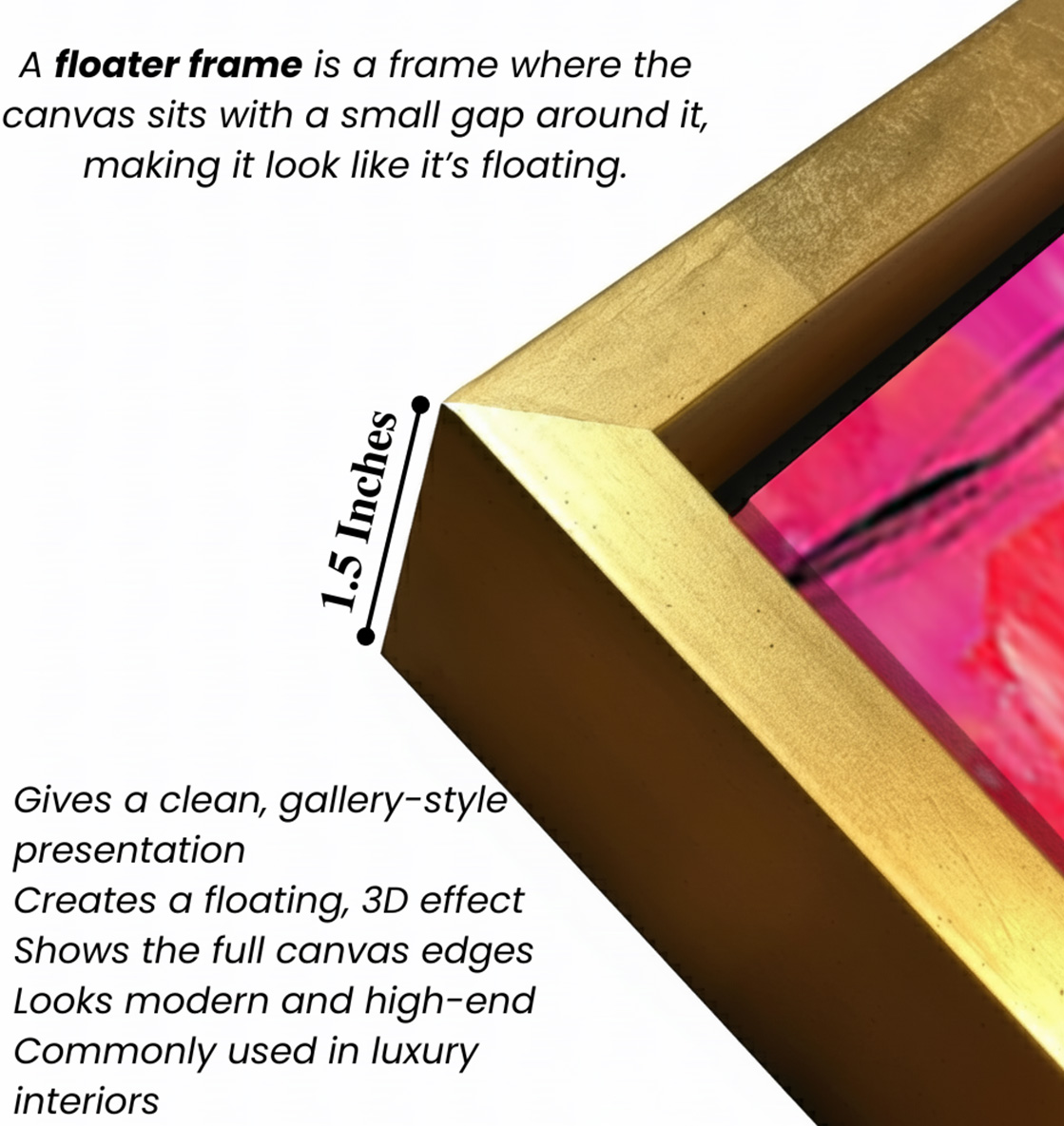 • Optional Floater Framing: Available with a premium floater frame option that creates a subtle gap between the canvas and the outer frame, enhancing depth and giving the artwork a refined, gallery-style floating effect that elevates its visual appeal.