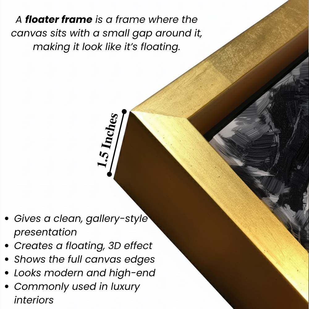 • Optional Floater Framing: Available with a premium floater frame option that creates a subtle gap between the canvas and the outer frame, enhancing depth and giving the artwork a refined, gallery-style floating effect that elevates its visual appeal.