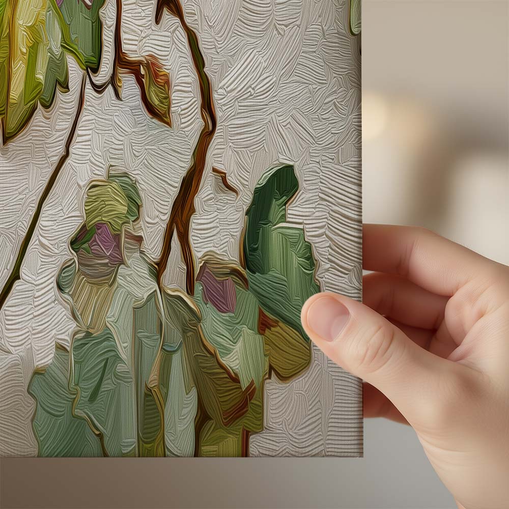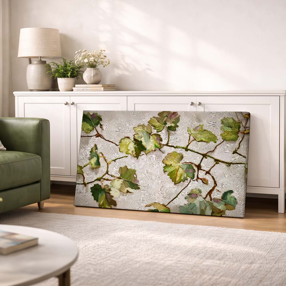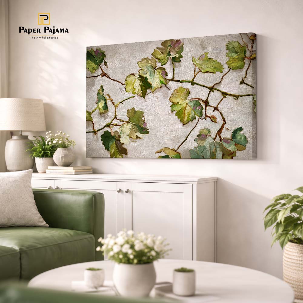 Rustic Leaves is a delicate botanical composition that celebrates the understated beauty of nature through soft, earthy tones and organic forms. The artwork features gently arranged leaves in shades of green and beige, creating a light and harmonious visual.