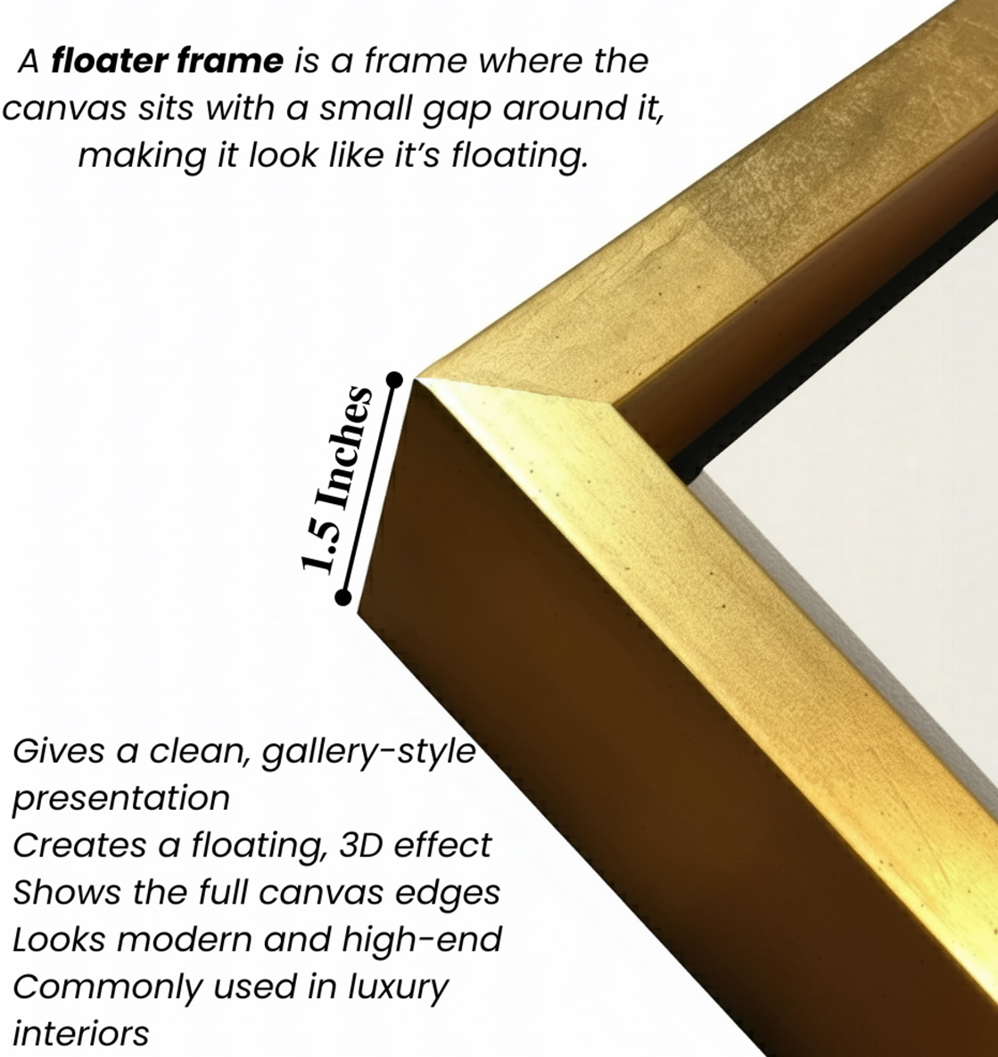 - Optional Floater Framing: Available with a premium floater frame option that creates a subtle gap between the canvas and the outer frame, enhancing depth and giving the artwork a refined, gallery-style floating effect that elevates its visual appeal.