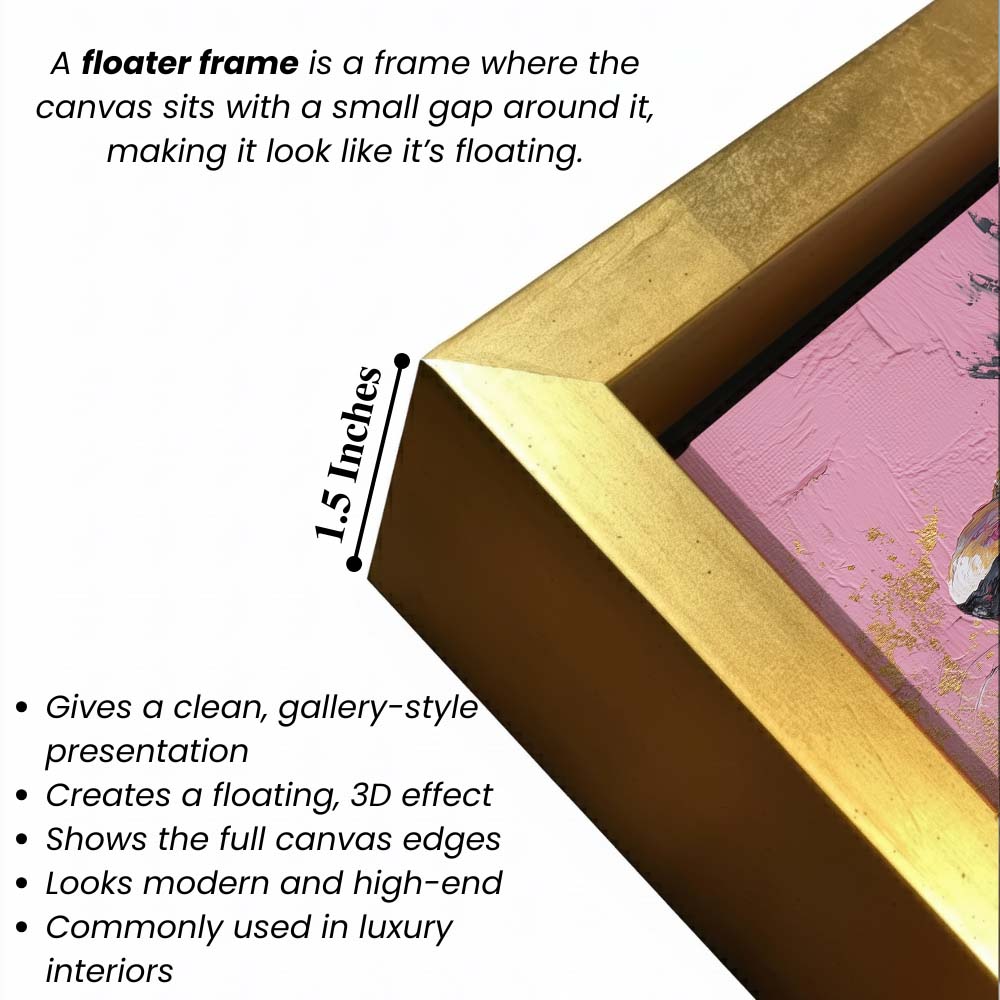 - Optional Floater Framing: Available with a premium floater frame option that creates a subtle gap between the canvas and the outer frame, enhancing depth and giving the artwork a refined, gallery-style floating effect that elevates its visual appeal.