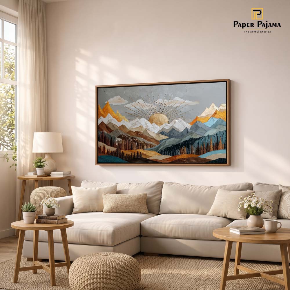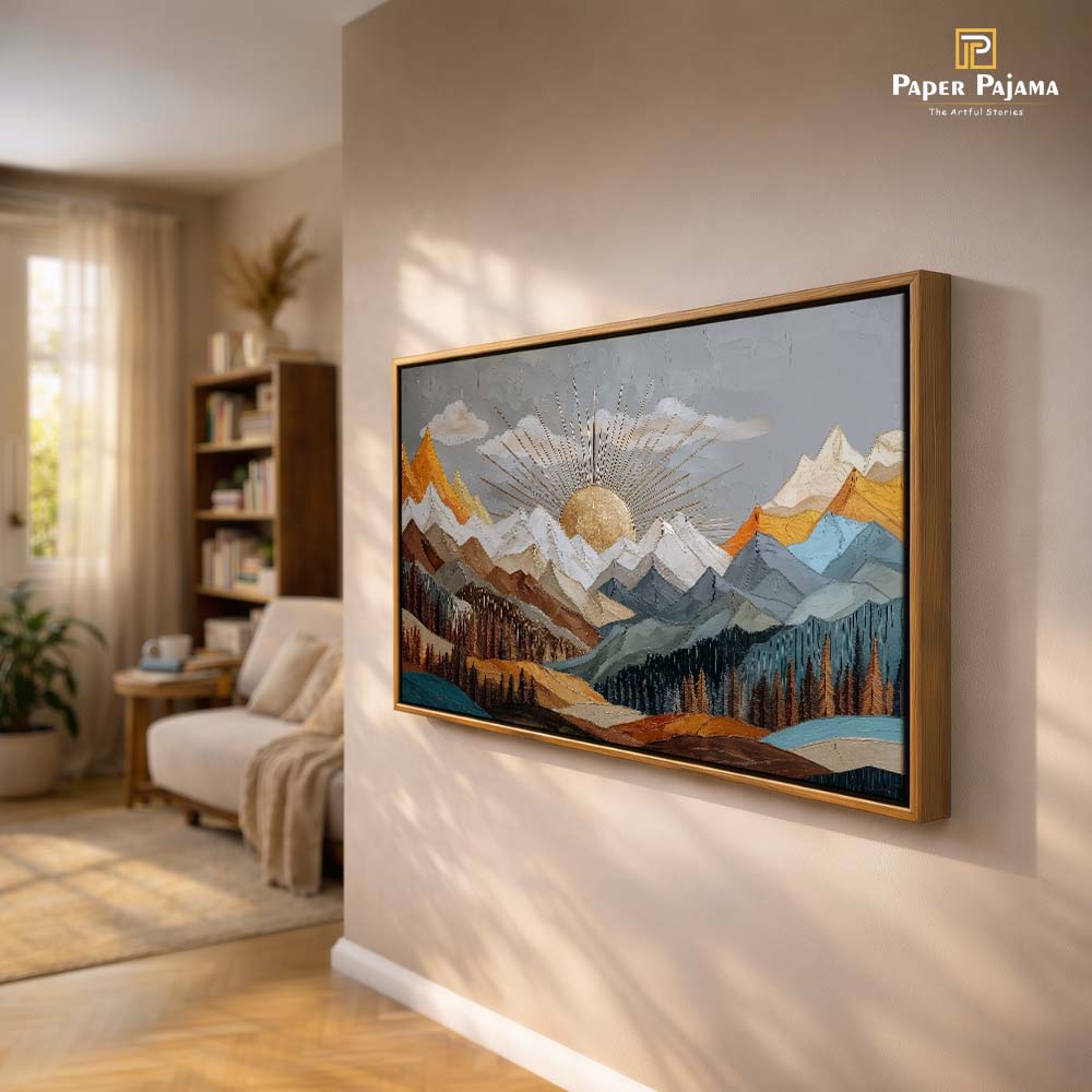 Designed by Paper Pajama, Solar Majesty is perfect for interiors that embrace positivity and grandeur. Ideal for living rooms or statement spaces, it brings warmth, energy, and inspiration.