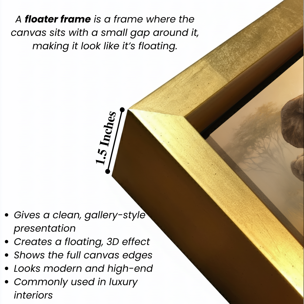 • Optional Floater Framing: Available with a premium floater frame option that creates a subtle gap between the canvas and the outer frame, enhancing depth and giving the artwork a refined, gallery-style floating effect that elevates its visual appeal.