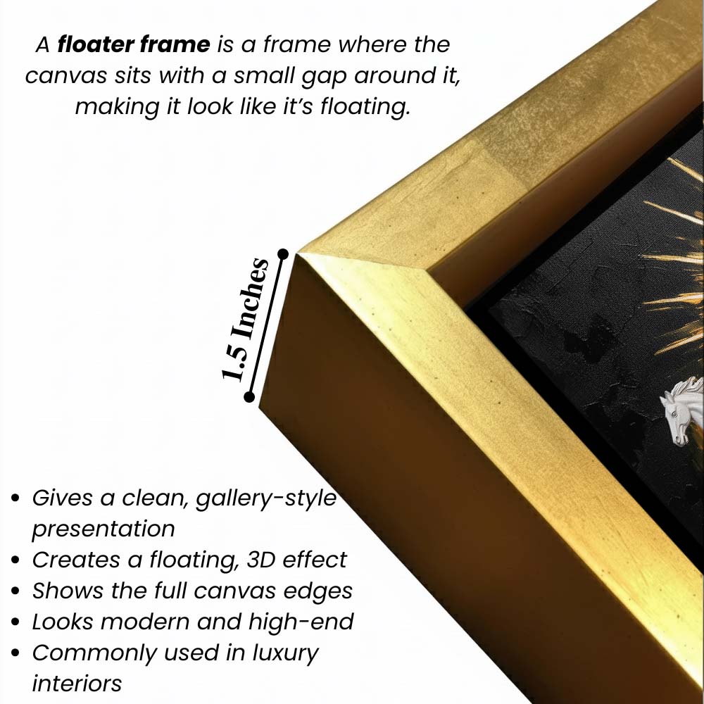- Optional Floater Framing: Available with a premium floater frame option that creates a subtle gap between the canvas and the outer frame, enhancing depth and giving the artwork a refined, gallery-style floating effect that elevates its visual appeal.